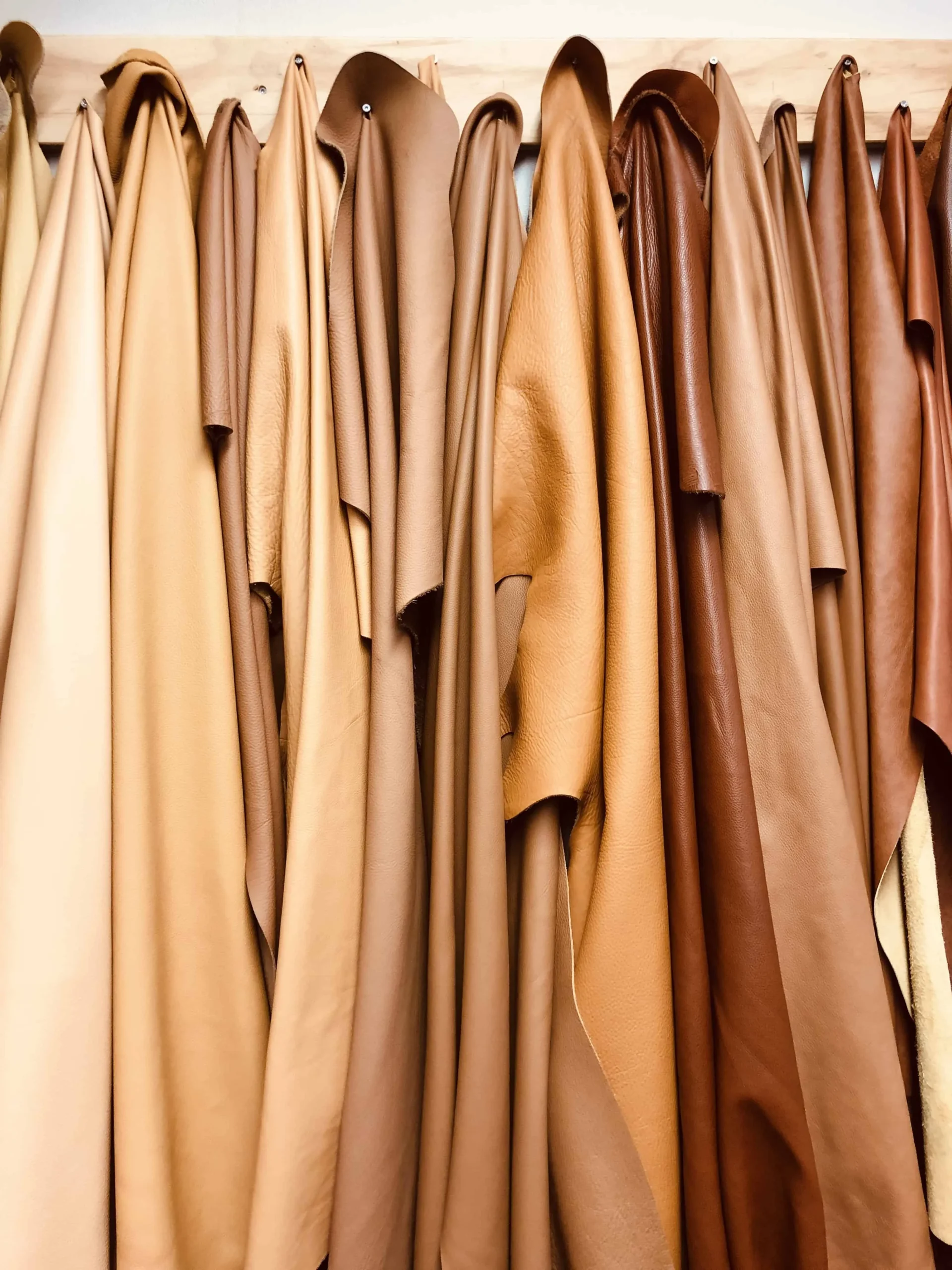 Halve en hele vellen leder: Wij verkopen ook halve en hele vellen leder, waarbij de grootte van een half vel varieert tussen 2 m² en 3 m², en een heel vel tussen 4,5 m² en 6 m². De prijs is afhankelijk van het type leder en varieert van €25 tot €75 per vierkante meter.