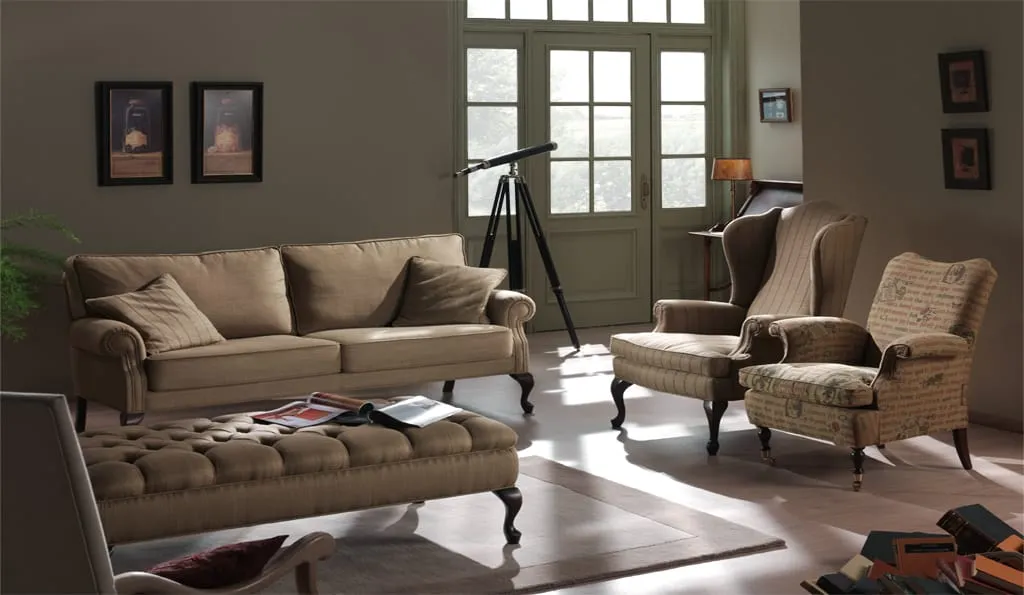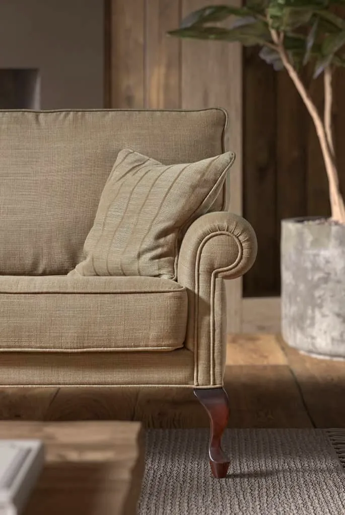 Chelsea is een elegant en stijlvol model. Of u nu een eerder klassiek, hedendaags, landelijk of engelse stijl interieur heeft, het model Chelsea past zich moeiteloos aan. De rugkussens in pluimen geven het model een non-chalante en uitnodigende look. De fijne Queen-Ann pootjes geven het geheel een zwevende look waardoor het model licht en luchtig blijft.