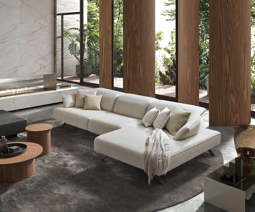 Deze strakke toch elegante sofa blinkt uit in zitcomfort. Een parel voor het oog en een zegen voor het lichaam. De hoofdsteunen zijn verstelbaar om voldoende hoofdsteun te kunnen bieden. De zitdiepte kan worden aangepast naar gelang de voorkeur van het moment, en bovendien is er de mogelijkheid om de voetenplan uit te vouwen. Zo biedt de zetel gepaste zit-accommodatie voor ieders wens. De fijne pootjes doen de zetel zweven, wat bijdraagt aan een lichte look van het salon.