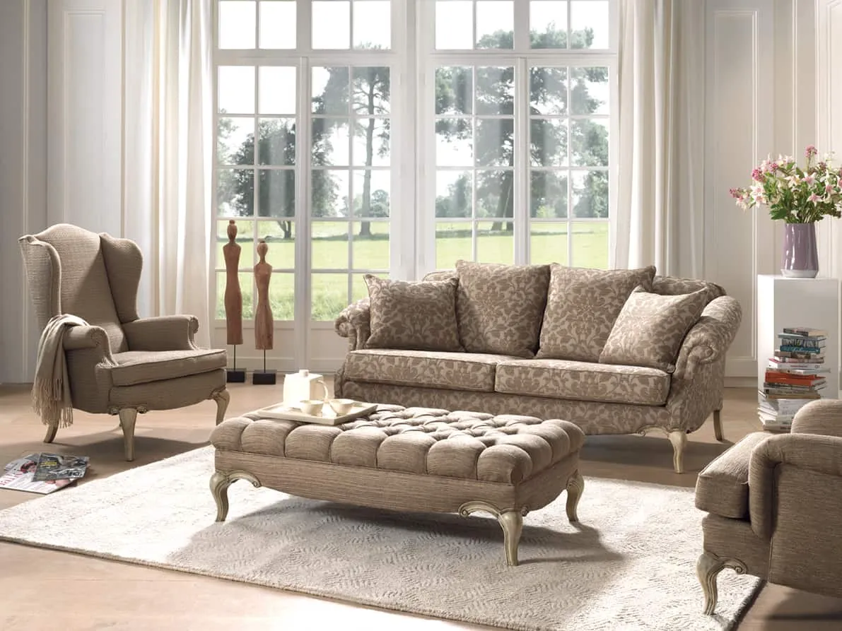 Het model Victoria is een hedendaagse interpretatie van de klassieke Louis XV stijl die reeds eeuwen bestaat. De poten en ondertravers zijn met de hand bewerkt, en worden gekleurd in functie van de stof of lederkeuze. De bogen en ronde vormen zijn speels maar ook functioneel voor het zitcomfort.