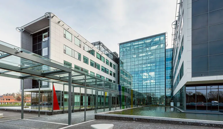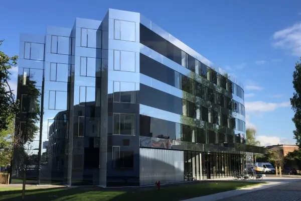 In 2017 verhuisde Woonzorg Centrum Hollebeek naar een nieuwe locatie. Het nieuwe gebouw heeft een unieke boemerang vorm werd ontworpen om een gevoel van gezelligheid en licht te bekomen. De architect van dit WZC nam reeds in de ontwerpfase van het gebouw contact met ons op, met de vraag of het mogelijk was gestoffeerde panelen als gevelbekleding te gebruiken. Na lang beraad en vele overlegmomenten hebben we samen een oplossing ontwikkeld die dit mogelijks moest maken. Enkele jaren later kwam alles tot uitvoering, en maakte we de panelen. Deze zijn bestand tegen weer en wind, tegen vocht, zonlicht etc. Om esthetische redenen zijn ze gebutonneerd met knopen.